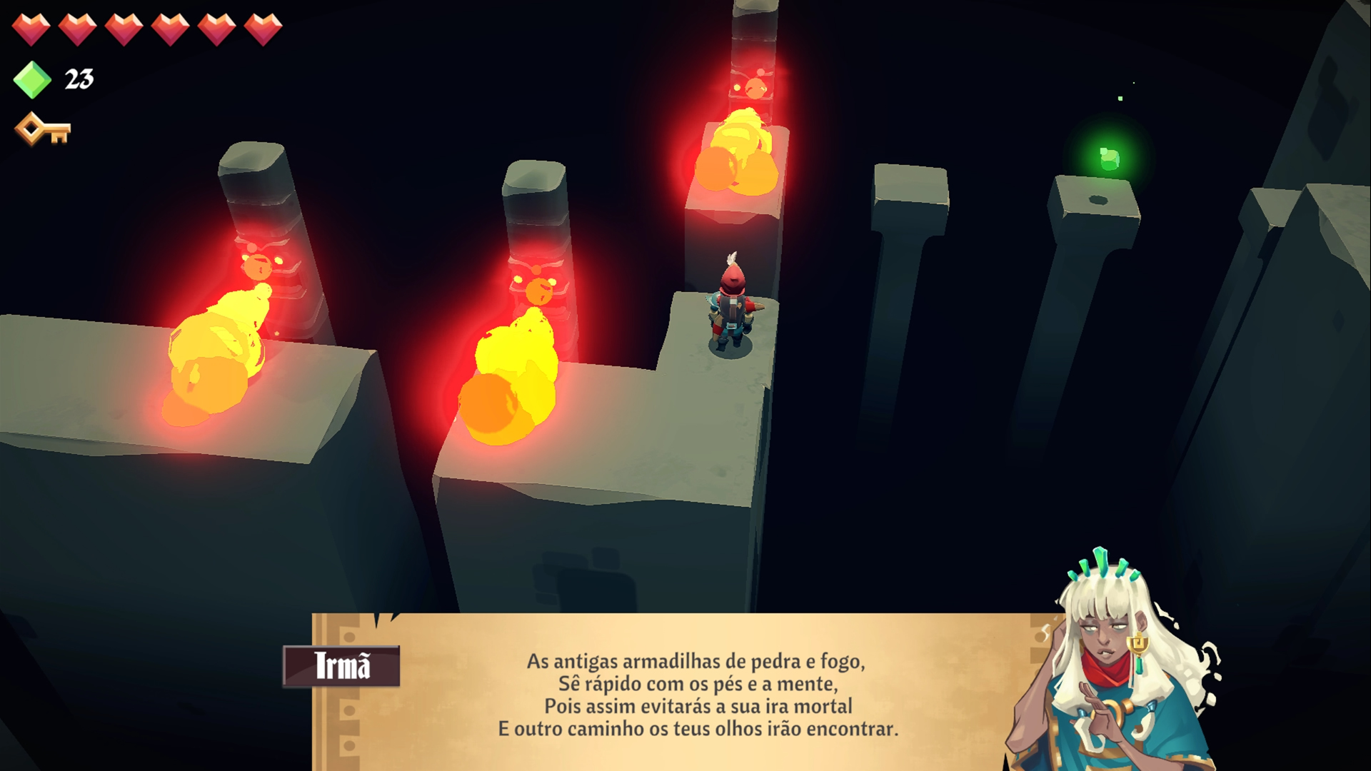 O nosso herói não está sozinho nesta aventura, pois tem o espírito da sua irmã a guiá-lo e a aconselhá-lo quando novos desafios se apresentam e a particularidade aqui e o que dá um pouco de originalidade ao jogo, é que a irmã do herói fala sempre em versos, escrito e falado, e a pessoa que lhe dá voz, faz um bom trabalho a dar uma certa mística à personagem. Não se pode dizer que os versos vão ganhar o prémio Nobel da literatura, mas mostra empenho na sua criação. É uma característica engraçada, mas preferia mil vezes ter mecânicas originais que afetassem a jogabilidade.