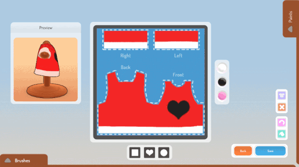 PINTA — veste o avental, pega nos pincéis e põe-te a colorir. Podes conceber papéis de parede, pavimentos e até mesmo t-shirts para tu e os aldeões vestirem. Põe todos os habitantes da cidade a vestir os teus designs únicos!